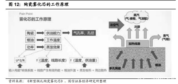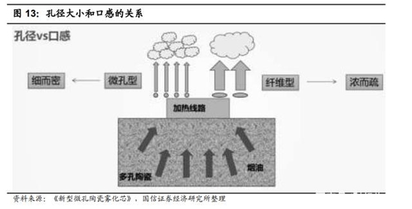 陶瓷芯在一定程度上解决了棉芯容易糊芯、口感一致性、稳定性较差等缺陷。一方面,多孔陶瓷材料丰富的孔结构使其同样能够充分增大烟油的受热面积;另一方面,多孔陶瓷耐热性较好,也容易加工成各种形状并与发热组件装配,利于提升生产效率。