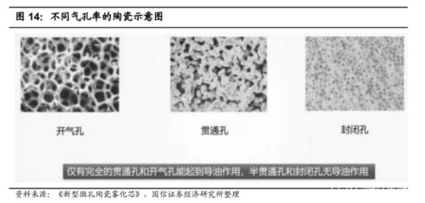 气孔率越高,气孔口径越大,导油效率越高。若导油速度过慢,容易造成干烧、糊芯等问题,进而影响口感以及雾化芯寿命。