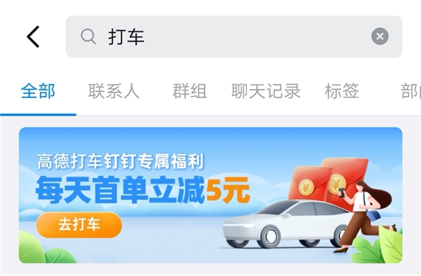 8月20日,高德打车在钉钉应用市场正式上线,成为首个在钉钉上线的个人版打车应用。用户在手机钉钉上搜索关键词“高德”或“打车”即可使用,享受“每人每天首单立减5元”的平台优惠。