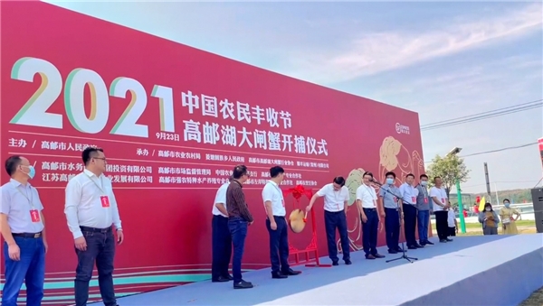 今日,2021中国农民丰收节高邮湖大闸蟹开捕仪式在高邮湖畔王鲜记大闸蟹养殖基地顺利举办。本次活动由高邮市人民政府主办,高邮市人民政府、顺丰速运常州区、高邮湖大闸蟹行业协会、高邮市农业农村局、菱塘回族乡人民政府等有关领导出席活动,高邮市160多家蟹企/蟹农纷纷到场,共同见证开捕仪式。