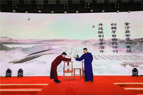 晚宴伊始,中国酒类流通协会副会长刘员首先在会上发表晚宴致辞。他表示酱酒作为白酒行业中的“黄金产业”,如今正迎来最好的发展时代。2021年,在“酱酒热+产区热”背景下,毕节市、金沙县政府抢抓白酒产业发展,位于赤水上游的金沙产区成了万众瞩目的焦点所在。