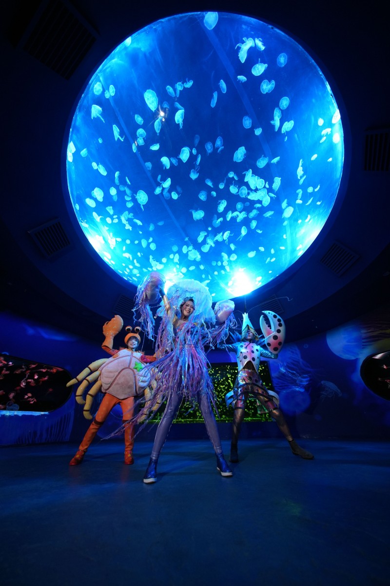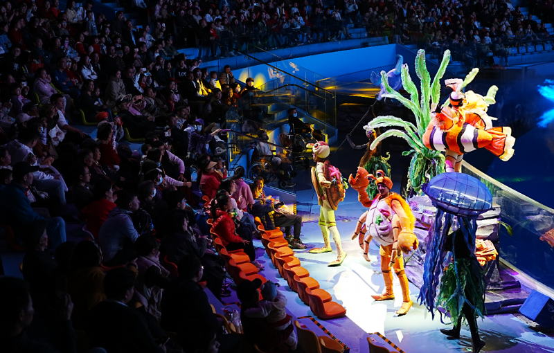 在过去的一年里“雪国四宝”北极熊、北极狼、北极狐、雪貂,还有白鲸、海狮、海豹等众多“海洋萌宠”,为游客创造了难忘的欢乐记忆。与此同时,小梅沙海洋世界的海洋动物明星家族也不断壮大。鲨鱼家族迎来新生命,条纹斑竹鲨宝宝萌趣亮相;草海龙、高脚蟹等“新朋友”安家热带馆;大洋池内,黄金鲹鱼群壮观巡游、“C位出道”,《开饭了鱼鱼》成王牌节目之一;“仙气飘飘”的水母家族、“胖娃娃”魔鬼鱼家族再添新成员。15 万尾海洋动物,共同构成了小梅沙海世界热闹的“蔚蓝社区”。