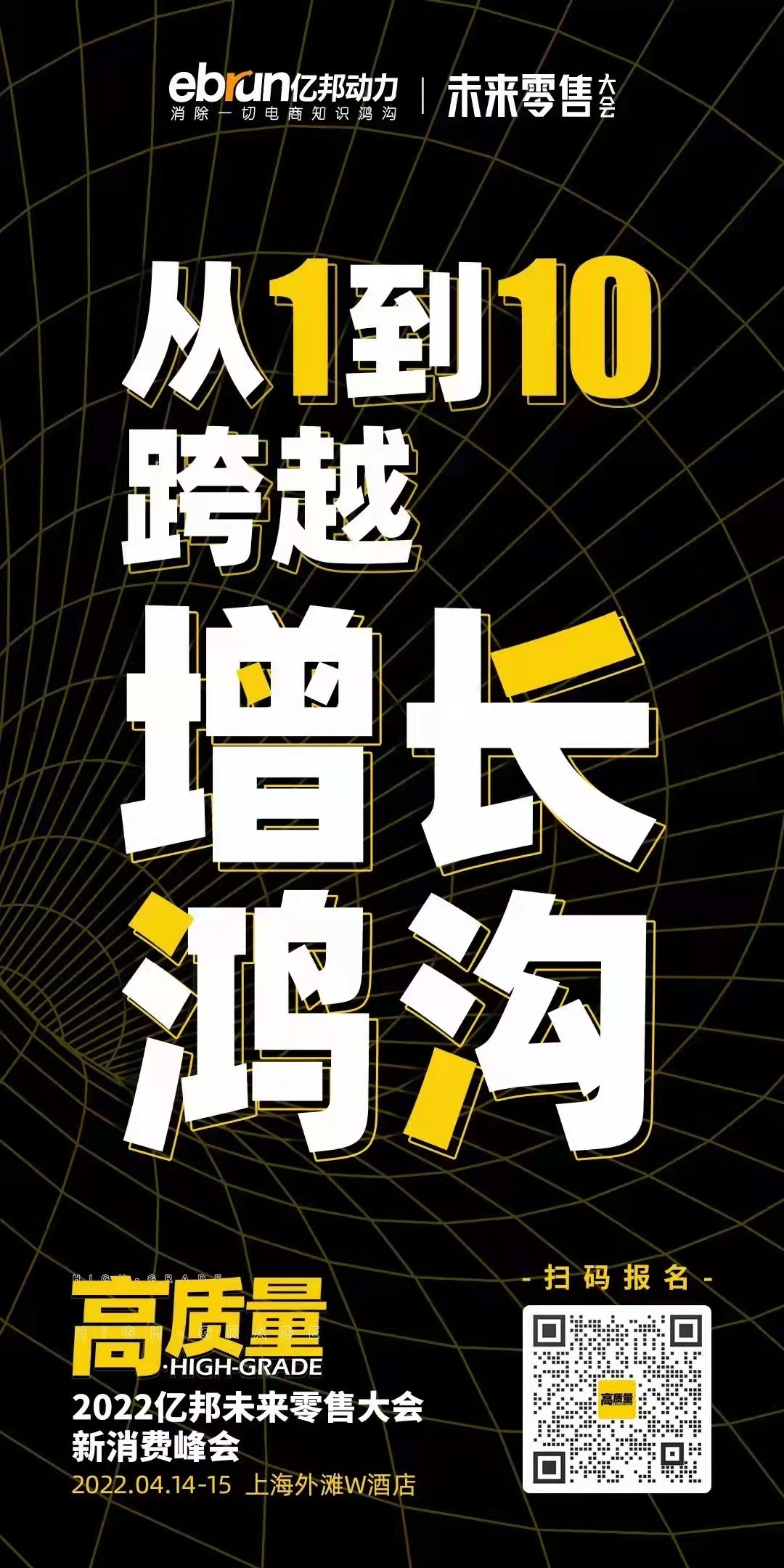 为了探讨“高质量”驱动下,品牌自身的进阶和行业格局的变革,亿邦动力将于4月14日-15日在上海举办未来零售新消费峰会。本届峰会以“高质量”为主题,汇聚各行业代表企业,聚焦高质量发展,围绕“何为高质量发展”“高质量品牌特征”“品牌如何做好科技硬实力”等话题展开深入探讨。