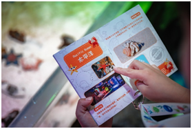 (游客带着“航海日志”集章护照,打卡海洋生物)