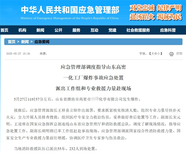 (应急管理部网站截图)