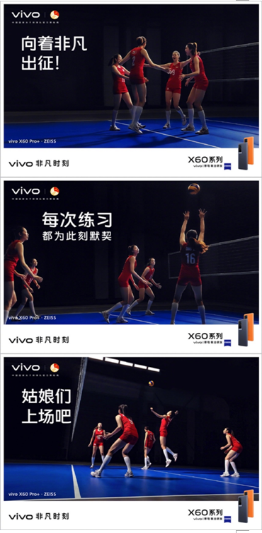 奥运会开始之初,VIVO发布了一组助力中国女排的借势海报,画面记录了中国女排练习时的矫健身姿,还有相拥加油的友爱场景,“向着非凡出征!”、“每次练习,都为此刻默契”、“姑娘们,上场吧”,隔着屏幕都能感受到激烈、、紧张的氛围,同时,也充分诠释了vivo的广告语“vivo非凡时刻”。