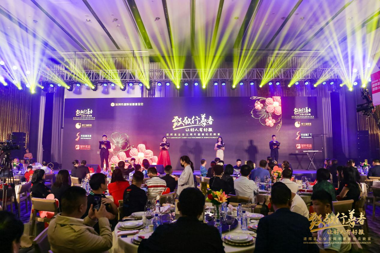 2021年11月7日,由深圳市建辉慈善基金会主办的“建辉五周年慈善拍卖晚宴”在深圳柏悦酒店华美绽放。梦工场投资、丹桂顺发展、智轩优品等三家爱心企业承担了本场晚宴的场地、餐饮、活动等费用,200余位爱心人士齐聚一堂,共同演绎了一场精美绝伦、热情洋溢的慈善拍卖晚宴。中国知名拍卖师郑晓星老师主持拍卖,晚宴一共筹集了286.3万元善款,善款将用于帮扶困境中的行善者,让好人有好报。