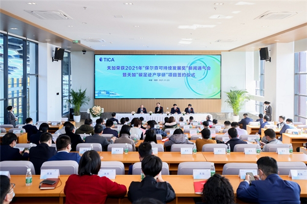图:天加荣获2021年“保尔森可持续发展奖”新闻通气会现场