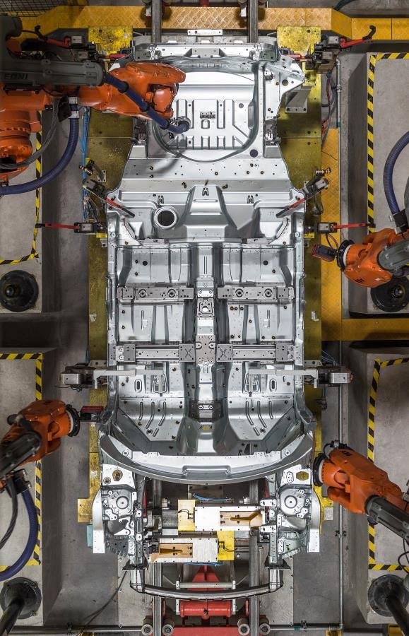 位于奇瑞捷豹路虎常熟工厂的全铝车身车间,占地48420平方米,共有344台机器人,其中266台自冲铆接机器人。在该车间,率先引入了的航空级别铆接胶合技术,铆接自动化率高达100%,正因为如此,在全铝车身车间的焊装部分中,看不到通常汽车生产车间中飞溅的电焊火花。