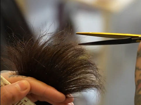 (Jack正在用张小泉理发剪理发)