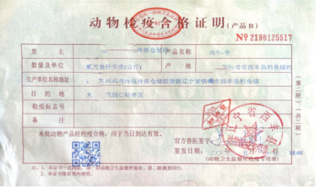 △查验牛骨原料的检疫合格证明及产品出厂检验报告