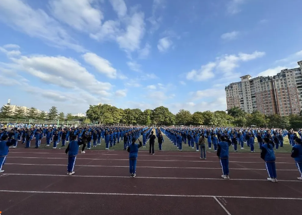 周五下午,迎着清凉的秋风,综合素质训练汇操展示正式拉开序幕。在教官的指挥下,一个个方阵有序进行训练成果展示。经过4天的队列训练,初一的同学们以饱满的精神状态,迈着整齐划一的步伐陆续登场。接下来,全体学生共同用手语操的形式歌唱《少年中国说》。每一个流畅的动作,每一个坚定的眼神,无不流露出少年们敢于担当的精气神!