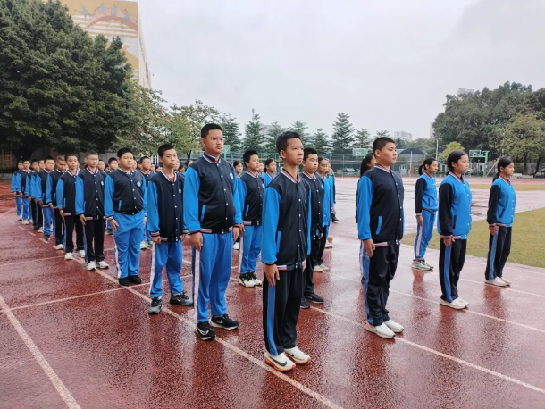 为了激发学生的爱国热情,增强国防观念和国家安全意识,培养艰苦奋斗、吃苦耐劳的作风,促进学生综合素质的提高,初一年级全体学生进行了为期4天的校内综合素质训练。