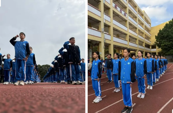 站军姿、喊口号、齐步走……同学们如同一棵棵葱郁挺拔的小白杨,身影英姿飒爽,步伐铿锵有力,声音整齐响亮。