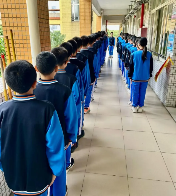 课堂规范训练也是本次综合素质训练的重要组成部分。“请同学们做好课前准备。”“老师好!”“走廊集合!”伴随着一句句明确简洁的口令,同学们纷纷响应,干净利落地完成动作。课堂规范训练助力同学们养成良好的学习习惯,为课堂教学提质增效。