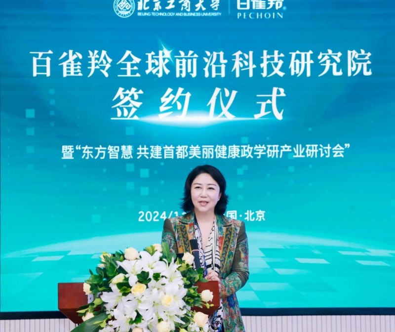 而百雀羚作为拥有深厚历史底蕴的国货美妆品牌,也是美妆行业科研创新的领航者,始终致力于将东方美学与现代科技相结合。近年来,百雀羚不断加码科研投入,完善产学研相结合的发展链路,并在多个美妆科研领域取得突破性研究成果。本次牵手北工商大学,更加突显百雀羚将进一步深化品牌以科技力加持天然草本理念的决心!北京工商大学校长郭建华介绍,过去10年间,百雀羚与北工商携手开展了多个科研项目,在皮肤研究、草本植物应用等领域取得了重要成果。例如针对“东方女性皮肤特性衰老过程”进行持续追踪,采样收集了10000余名东方女性肌肤本态,为抗衰技术奠定了坚实基础。2023年,双方通过科研战略合作协议进一步深化产学研合作,为产品研发提供了坚实的科学依据。
