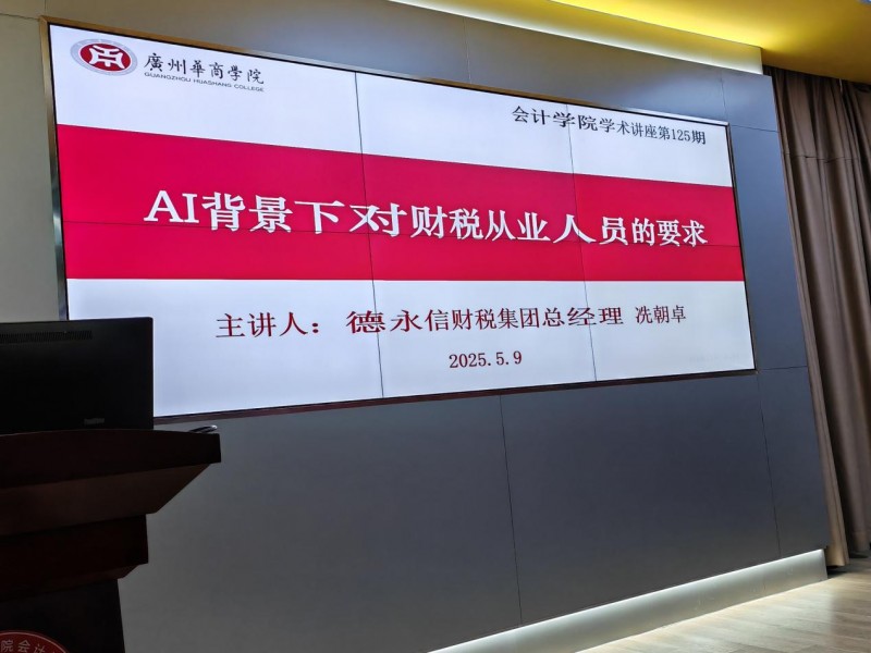 5月9日下午,冼书记特别应广州华商学院邀请为会计学院师生做“AI背景下对财税从业人员的要求”专题讲座。这位深耕财税行业17年的财税专家,通过生动的案例展示了AI在财税中的应用、风险预警等前沿应用,详细讲解了AI对财税颠覆性革命——AI时代财税人员必备的技能以及AI背景下对财税岗位的要求。“未来财税人才必须掌握‘科技+专业’的复合能力,”他强调,“这正是我们与华商学院等高校深化合作的着力点”。讲座现场座无虚席,为即将召开的论坛营造了浓厚氛围。