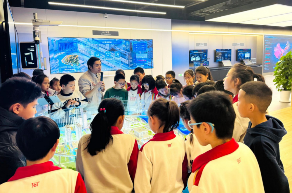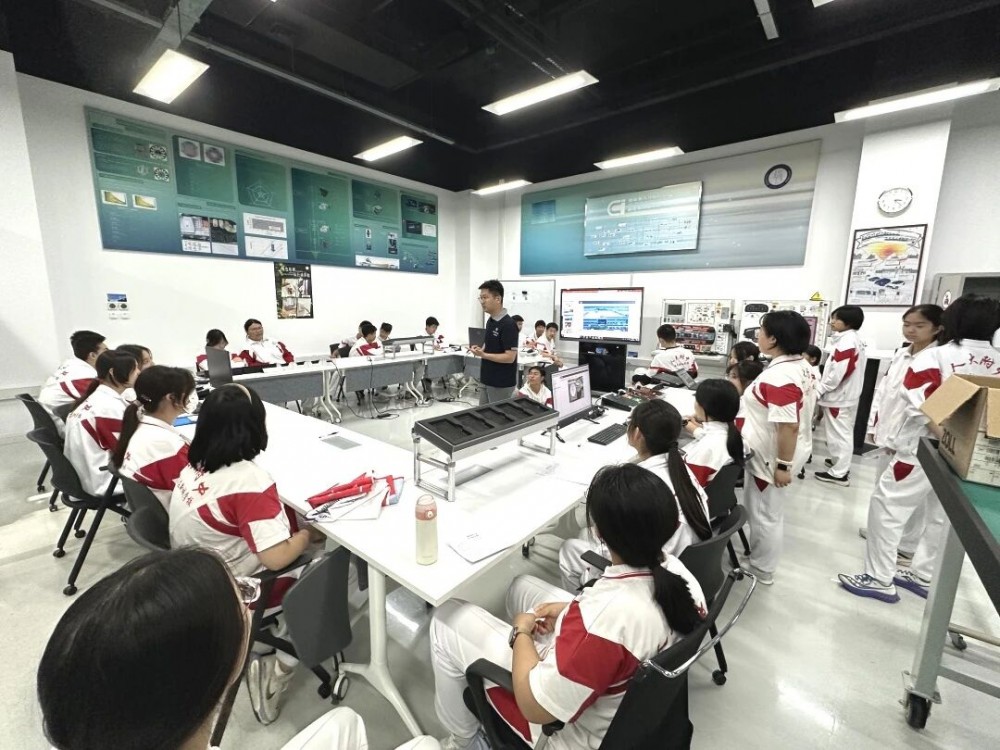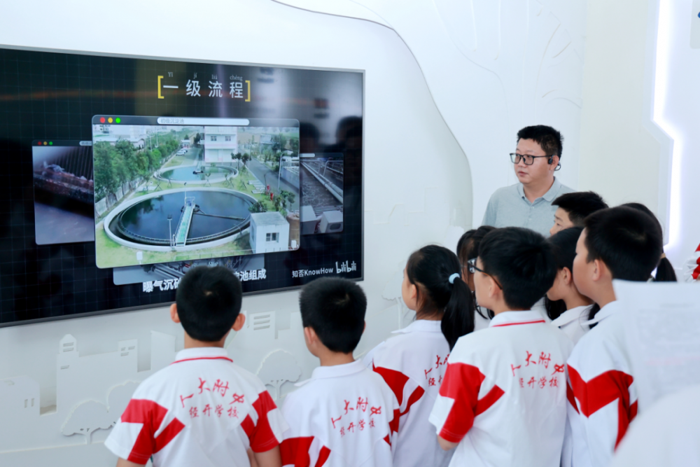 人大附中北京经济技术开发区学校学生参观金风科技北京总部,企业工程师为学生讲解互联网+智慧污水处理。