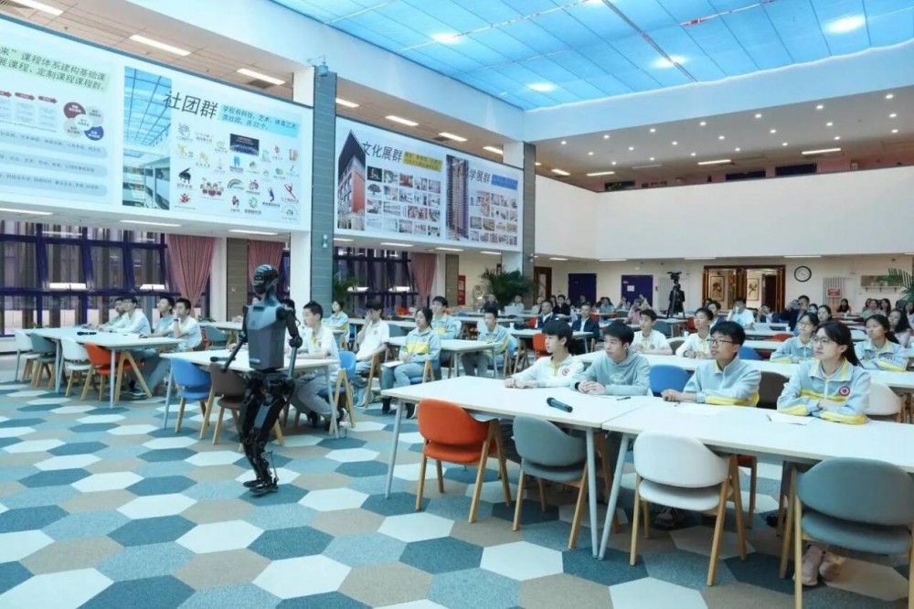 北京市第二中学经开区学校邀请北京亦庄半程马拉松暨人形机器人半程马拉松赛事冠军“天工Ultra”机器人团队走进课堂,为学生们上了一堂“大思政课”。
