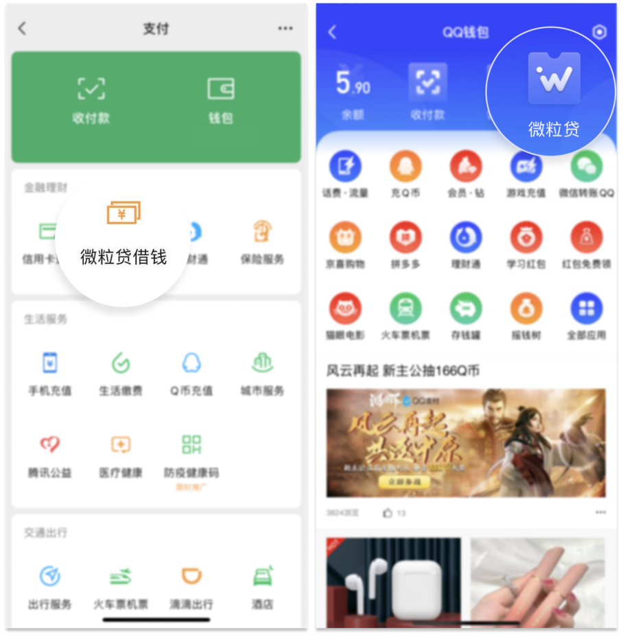 微粒贷是微众银行推出的一款小额信贷产品,在微信支付或者手机QQ钱包页面可以看到入口。借款流程非常简单,进入微粒贷点击借款,根据页面提示完成相关操作就行,不用抵押担保,也不用提供纸质材料,审批快到秒过,钱也是一分钟左右就可以到账,急用钱的时候很及时。无抵押小额贷款