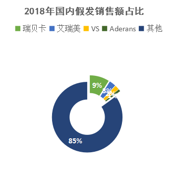 2013年假发品牌瑞贝卡异军突起,迅速成为行业领跑者。至2018年,其国内假发销售占比9%。