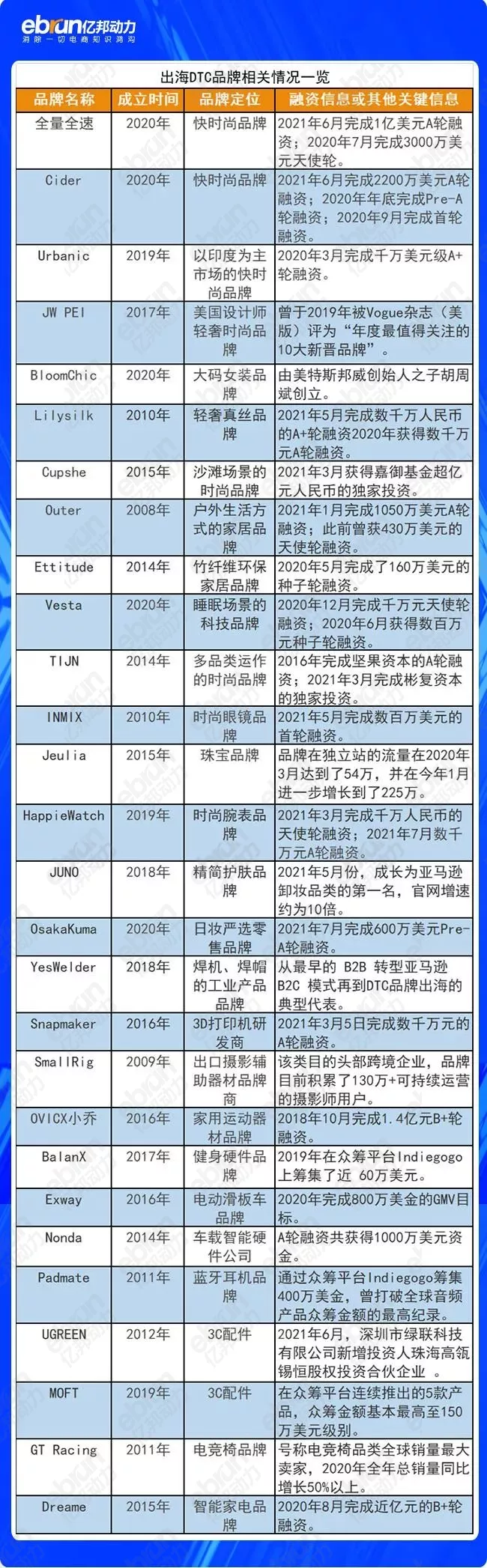 亿邦动力整理28家出海DTC企业发现,其中近半数是最近3年成立的新企业,从2020年至今,这28家企业中,公开过的融资超过20轮,累计融资金额超过30亿元。且融资消息还在不断传来。