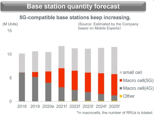 佐藤俊幸:这些都是村田重要的客户。研究公司(GFK)称,2019年5G智能手机出货量为800万,2020年2.1亿,2021年5.22亿。同样是智能手机,低端机型和5G高端机型的元件数量会有2-3倍的差异。