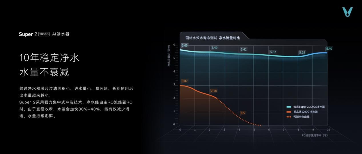 Super2 2000G 云米AI净水器再次突破,10年稳定净水,高效去农残