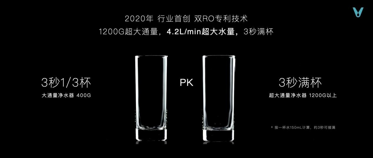 传统净水器普遍存在出水量太小的通病,对此,云米在2020年率先推出双RO专利技术,以1200G超大通量,4.2L/min超大水量,实现3秒满杯,解决出水量小的难题。2022年,云米净水器在通量上又⼀次实现飞跃性的升级,再次突破流速天花板。