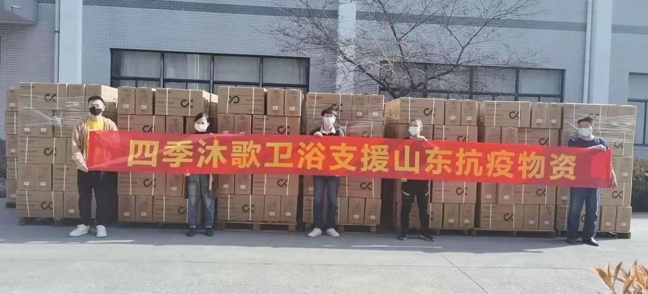 面对山东紧急疫情防控需求,时刻关注着各地防疫工作需求的四季沐歌卫浴火速响应,调动企业各项资源,迅速向山东省德州市捐赠出第一批抗疫物资,共计600多套浴霸,用以保障众多一线防疫工作人员的洗浴设施需求,为疫区提供力所能及的帮助,助力山东疫情防控工作顺利开展。