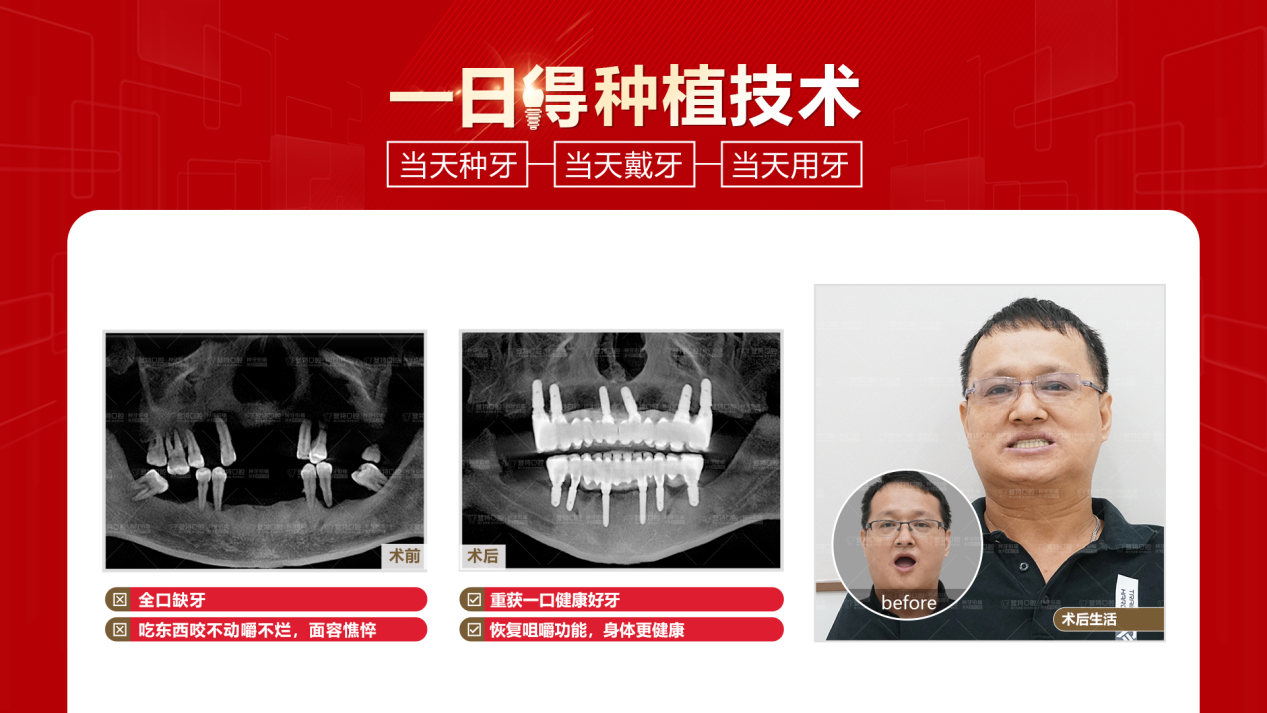 当天种牙、当天戴牙、当天用牙 一次到院、一次手术、一次完成