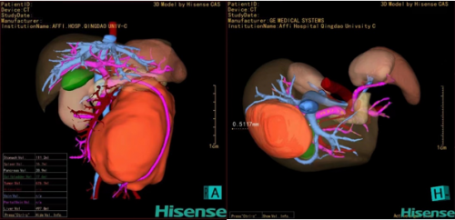 2013年,青岛大学附属医院与海信集团在“十二五”国家科技支撑计划等重大课题资助下,密切结合临床,研发出国际首创的基于小儿肝胆胰的计算机辅助手术系统(CAS),并构建了儿童肝、胆、胰肿瘤精准治疗体系,建立了人类数字肝脏大数据平台。基于平台大数据分析技术,医院提出了新的肝段分型及各年龄段平均肝体积,实现了从“传统经验切除”到“数字化引导精准手术”的根本转变。该项目不仅获得2019年度国家科技进步二等奖,站上国家科技的最高领奖台,还引领了国内医学影像三维重建产业发展,服务患者近4万例。