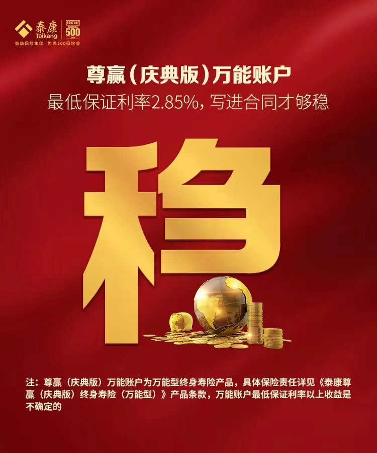 《泰康尊赢(庆典版)终身寿险(万能型)》同样是本届财富节的出色选手,提供身故保障,同时提供最低保证利率,保单账户价值按不低于最低保证利率的结算利率累积。具有终身保底收益、月复利增值等优势。“双降双倍”为财富规划守住底线,注入更多活力。