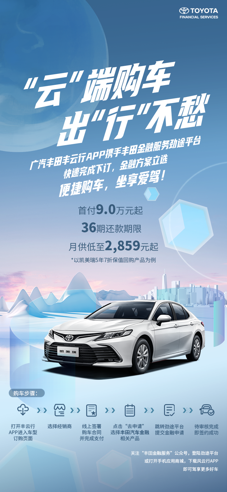 用户王先生是此项合作的受益人之一。白领王先生新婚购房不久,想添置一辆保养及耗油低的SUV锋兰达满足日常城市通勤及周末外出旅游。现在收入稳定,除每月房贷及日常开销外,仅有部分收入可用于支付车辆的月供。4S店销售人员在了解到王先生现况后,推荐王先生在广汽丰田“丰云行”APP中选择由丰田汽车金融提供的一款低首付,低月供,高保值的金融方案。首付仅需20%,月供低至714元/月,36期期满后满足指定服务商的回购条件下,获得相当于购车发票78%-82%的回购权益保障。对于王先生来说,不仅解决了资金紧张的问题,满足了低月供的需求,还完全不用担心几年后车辆残值贬值问题,3年后如有换车需求,还可以轻松置换升级为广汽丰田的其它畅销车型。
