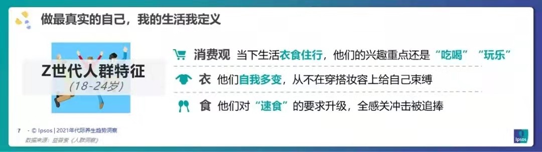 对于在新世纪中成长起来的这代年轻人来说,他们的消费观更为个性,展现出兴趣优先、注重体验、理性消费等多元特征,因此消费对他们而言,已不仅仅是需求的满足,更是一种生活方式的追求,反映到食物方面,他们更愿意选择“有新意、更方便”的产品。